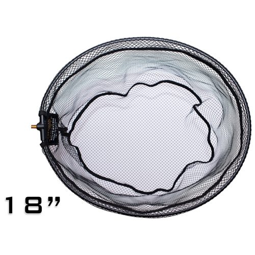 These nets are exceptionally lightweight, making them perfect for silverfish fishing on natural waters. The mesh features a light rubber coating that resists snagging on hooks while remaining soft and fish-friendly. Thanks to the coating, the mesh won’t absorb water and can be shaken dry instantly. 18in (46cm)